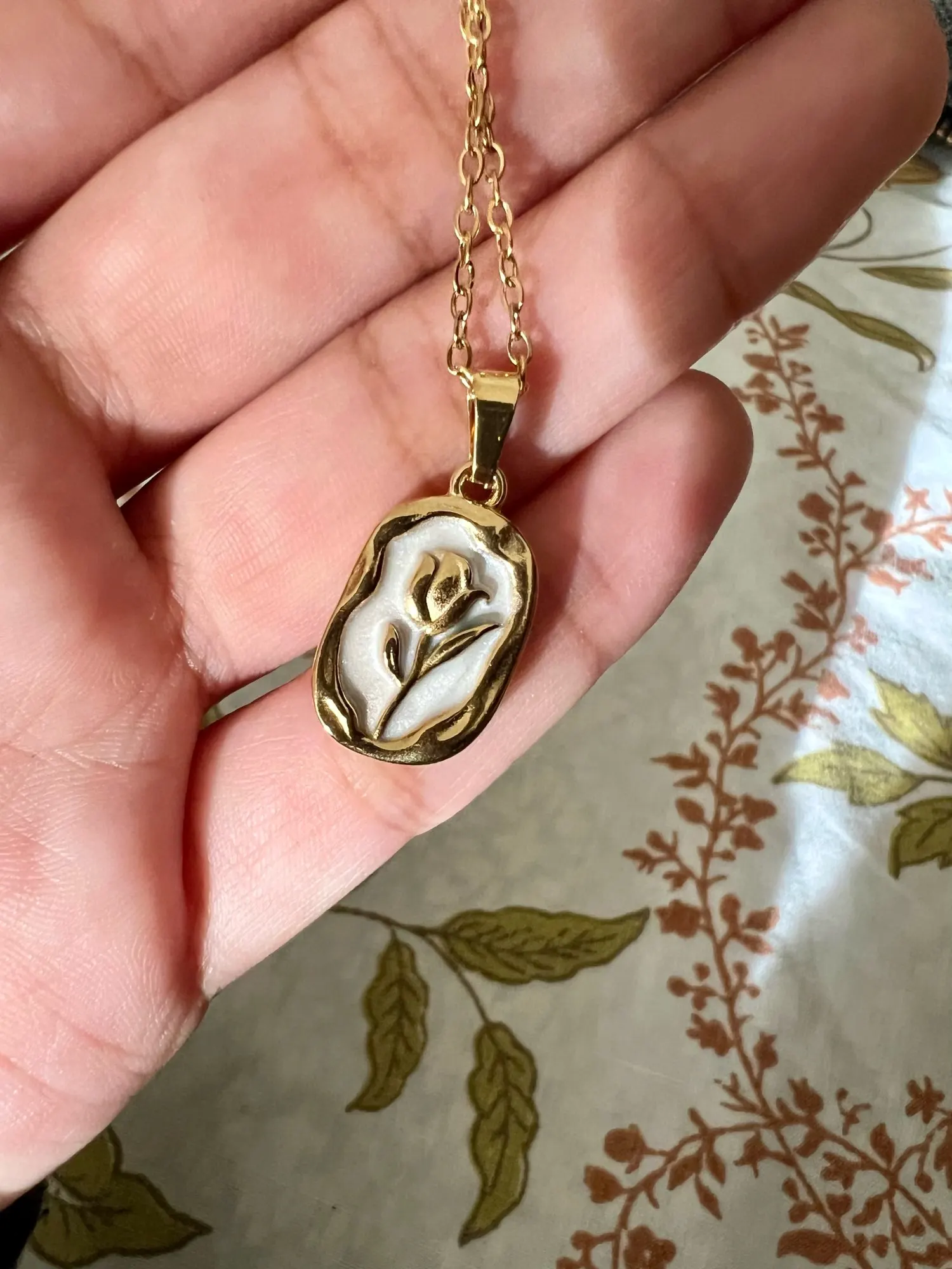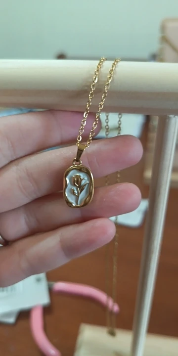 JJohnny SchmelerSuper beautiful gold color, it has a delicate appearance but is sturdy. I definitely recommend this necklace!!